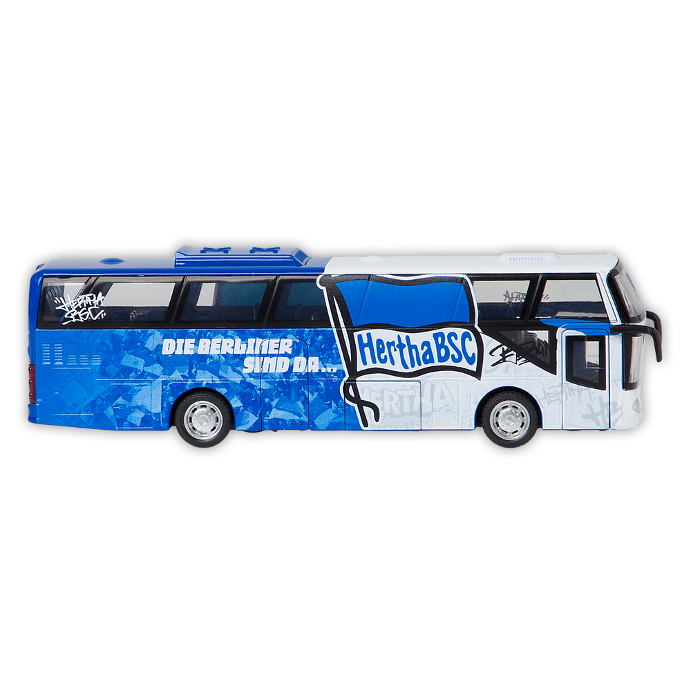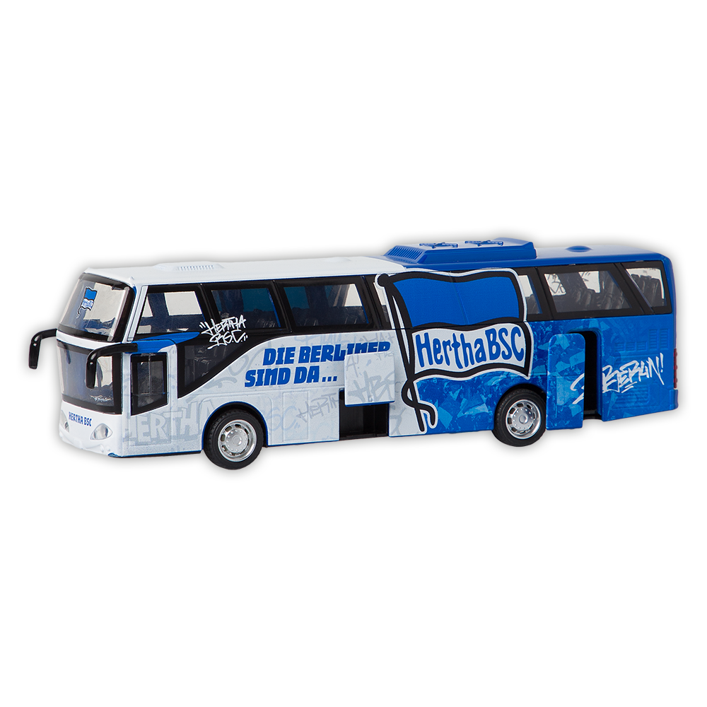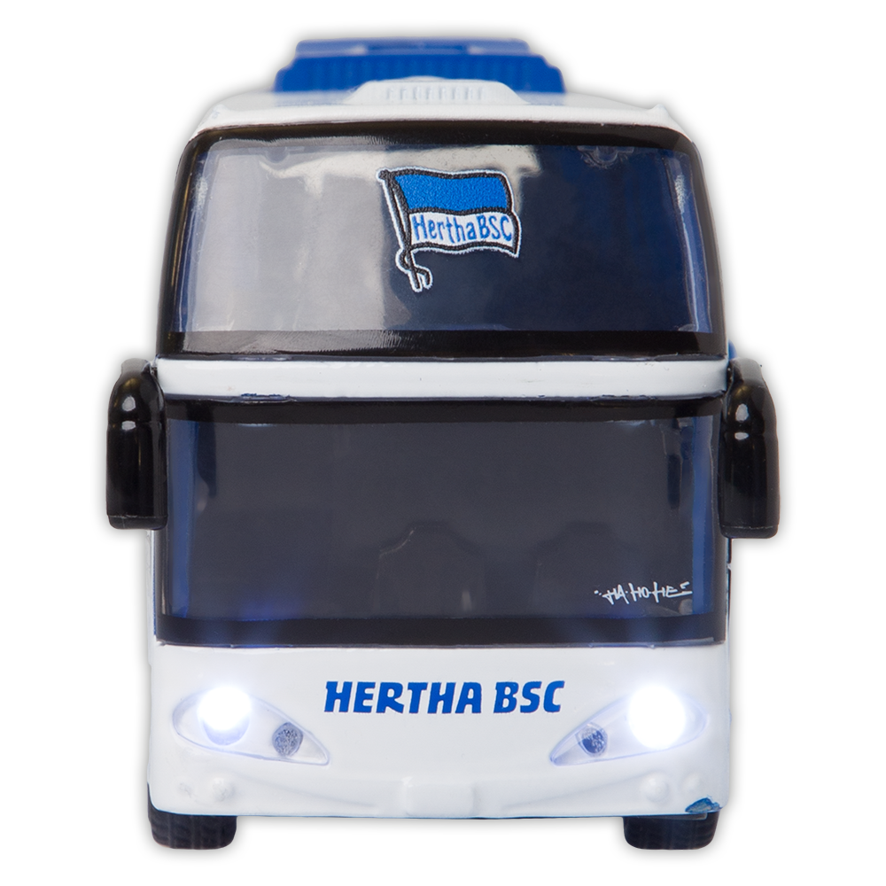 Hier kommt der Mannschaftsbus von Hertha BSC mit Sound und Licht in Spielzeuggröße.
