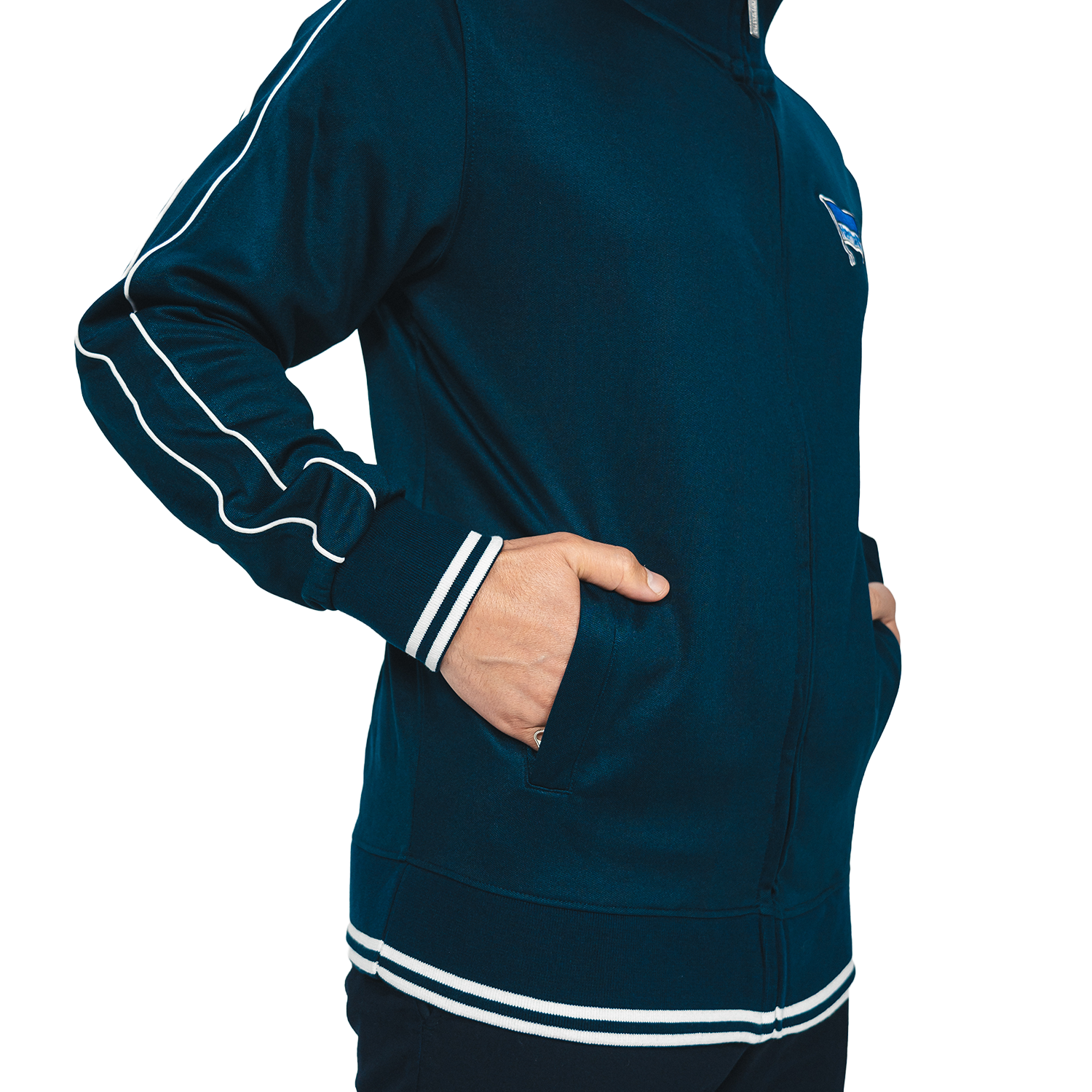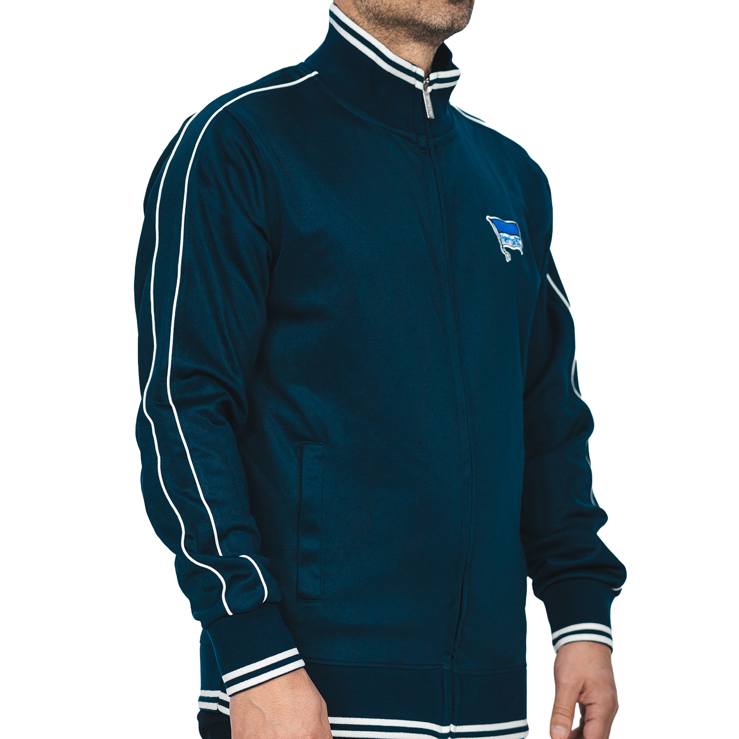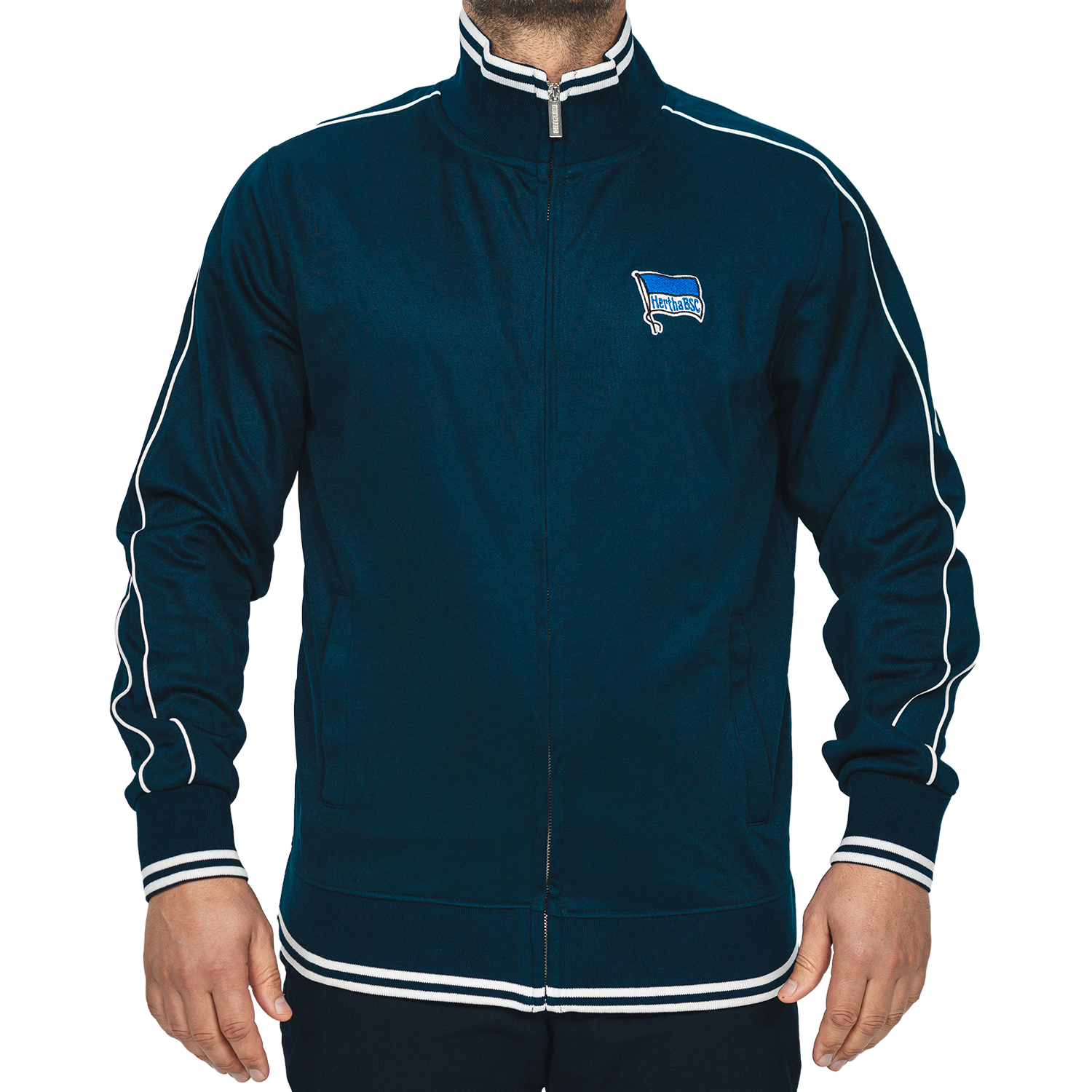 Als ein Mitglied unserer Hertha hast du exklusiv die Möglichkeit diese Jacke zu erwerben. Die sportliche Jacke überzeugt durch ihr schlichtes Design und dem mit weiß abgesetzten Kragen und Bündchen. Ob im Alltag oder Stadion, die Jacke in Navy ist dein schlichter Begleiter und ein Zeichen deiner Treue.