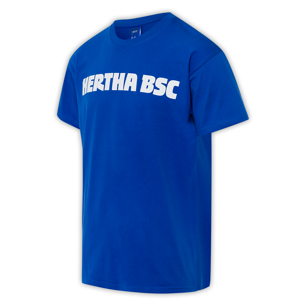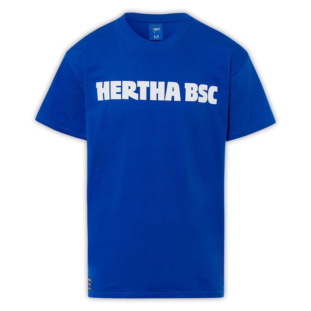 Schlichtes T-Shirt in einem schönen Royalblau mit großem weißen Hertha BSC Schriftzug auf der Brust. Ideales Outfit für das nächste Heimspiel oder den nächsten Städtetrip.