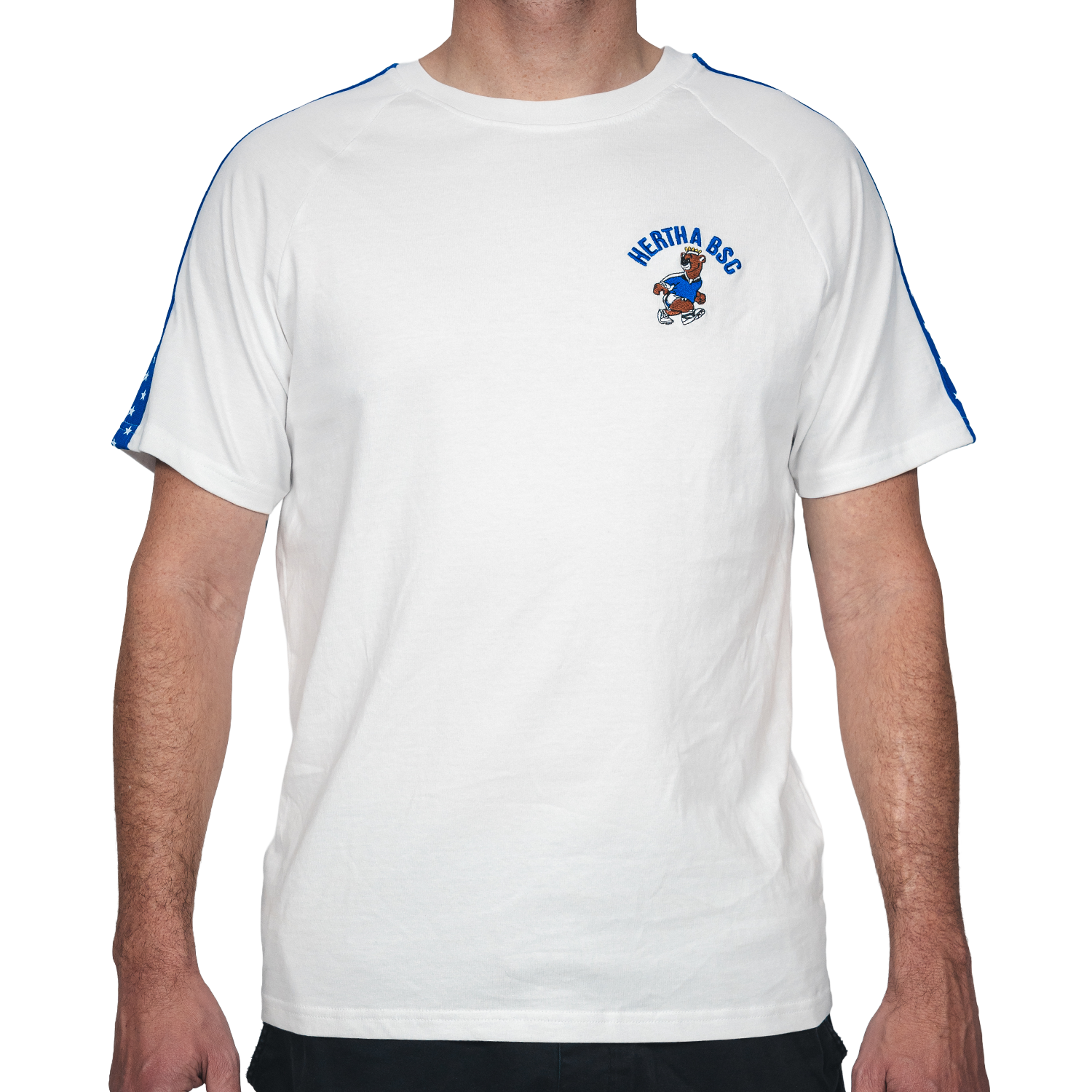 Etwas schlichter aber trotzdem im Sternelook kommt das passende T-Shirt zu unserer Sternekollektion. Ein toller Hingucker im Alltag oder Stadion und leicht zu kombinieren.