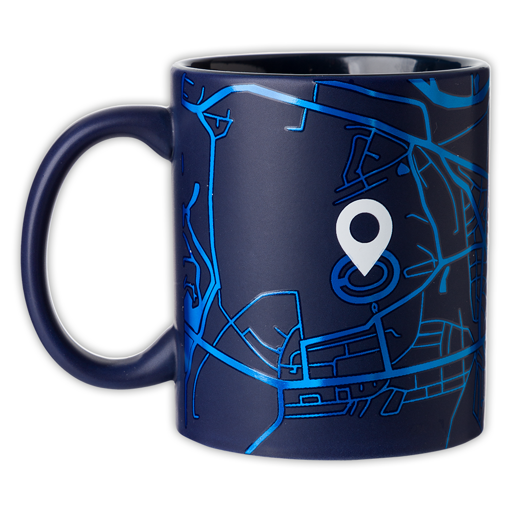 Zeige auch im Alltag für welchen Verein dein Herz schlägt. Die dekorative Tasse in dunkelblau zeigt die Stadtkarte in einem passenden Metallic blau und ist ein toller Hingucker, ob in deiner Küche, als Geschenk oder am Arbeitsplatz.