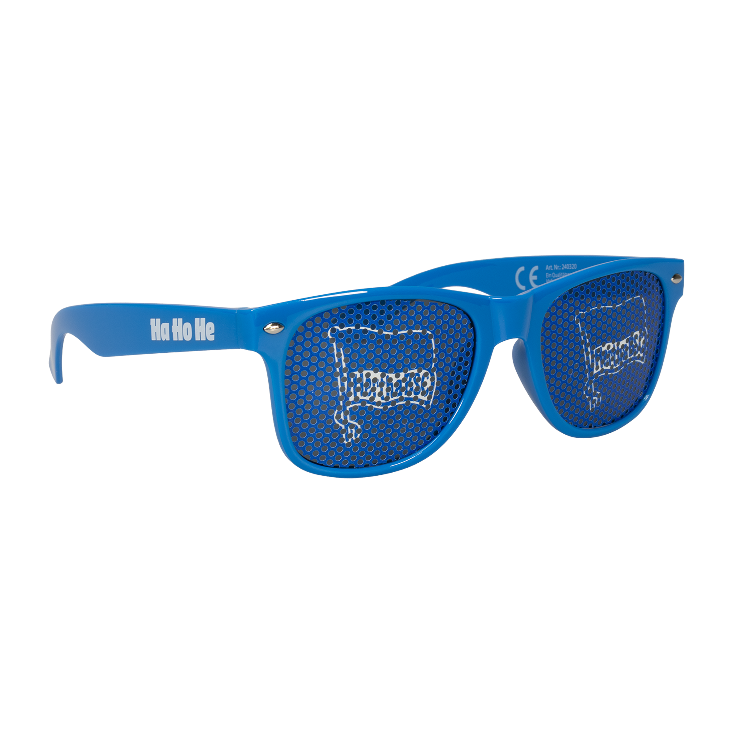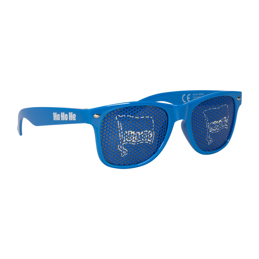 Stylische Fanbrille in Blau mit Hertha-Logo auf den perforierten Gläsern und dem Schriftzug „Ha Ho He“ auf dem Bügel. Leicht, bequem und perfekt für Stadion, Public Viewing oder Fan-Events.