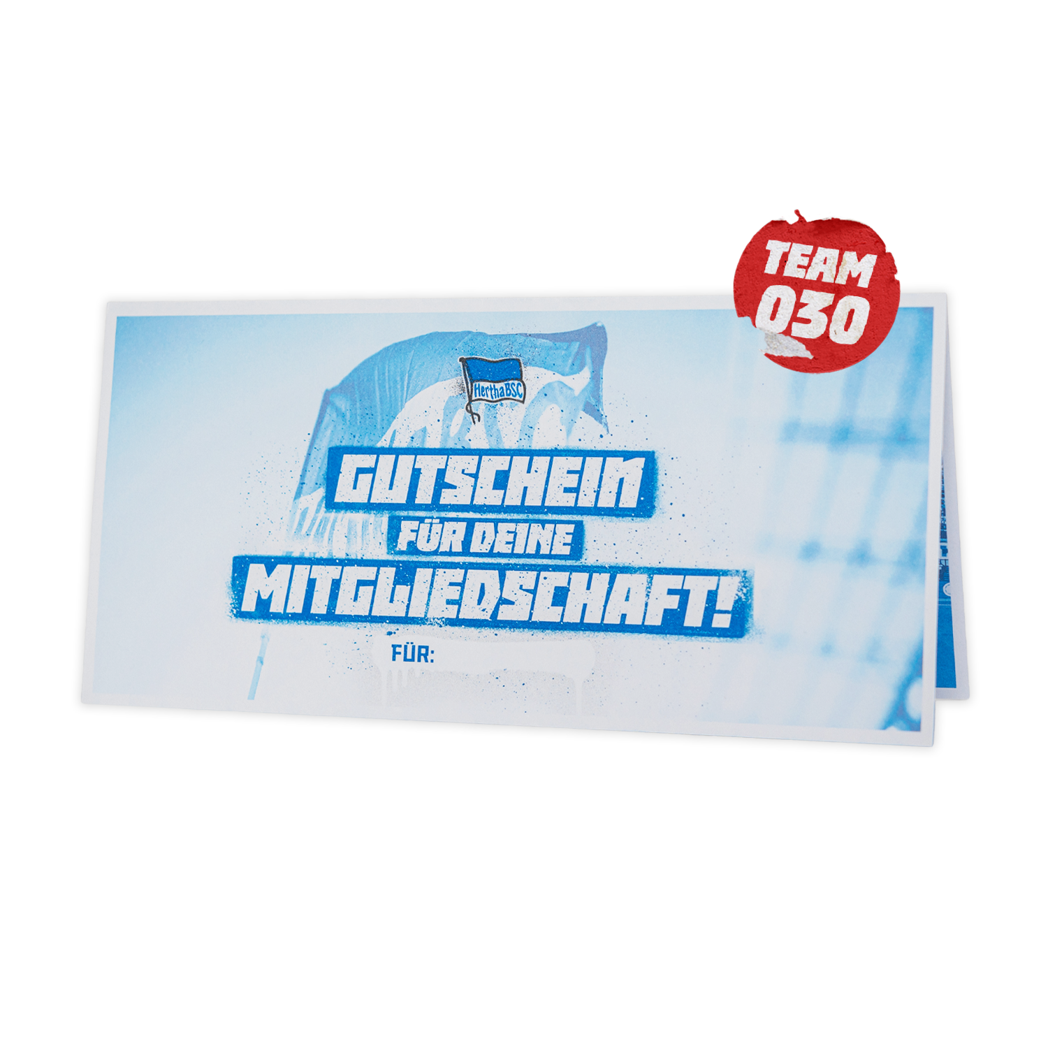 Verschenke einen Gutschein für eine einjährige "Team 030" Mitgliedschaft beim Hertha BSC e. V., sowie das Heimtrikot der aktuellen Spielzeit und versprühe blau-weiße Leidenschaft!